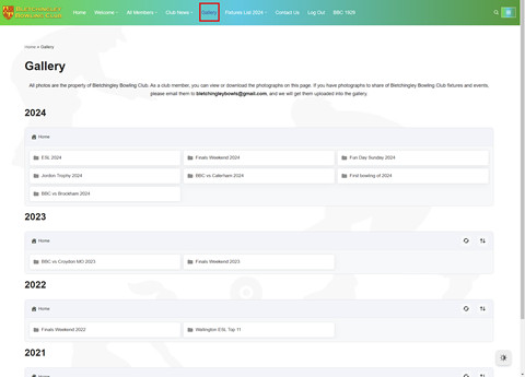 - There is a new Gallery (for logged-in members only) menu item. The gallery is directly linked to the club’s Gmail account. If you have photographs of fixtures or events and would like to see them in the gallery, please email your full-size photographs to bletchingleybowls@gmail.com, and we’ll get them added. It doesn’t matter how far back they go, anything related to the club will be welcome.